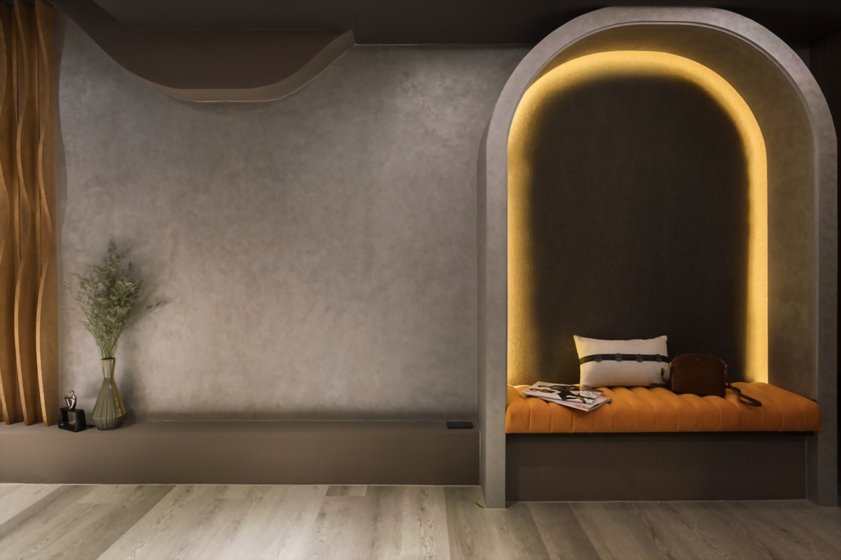 以現代時尚風格為底的空間裡,線條被柔化、材質被放慢。 我們以低飽和的咖啡與米灰作為主調,搭配細緻的木紋與手感塗料, 讓每一次觸碰、每一道光的轉折,都成為情緒被安撫的瞬間。