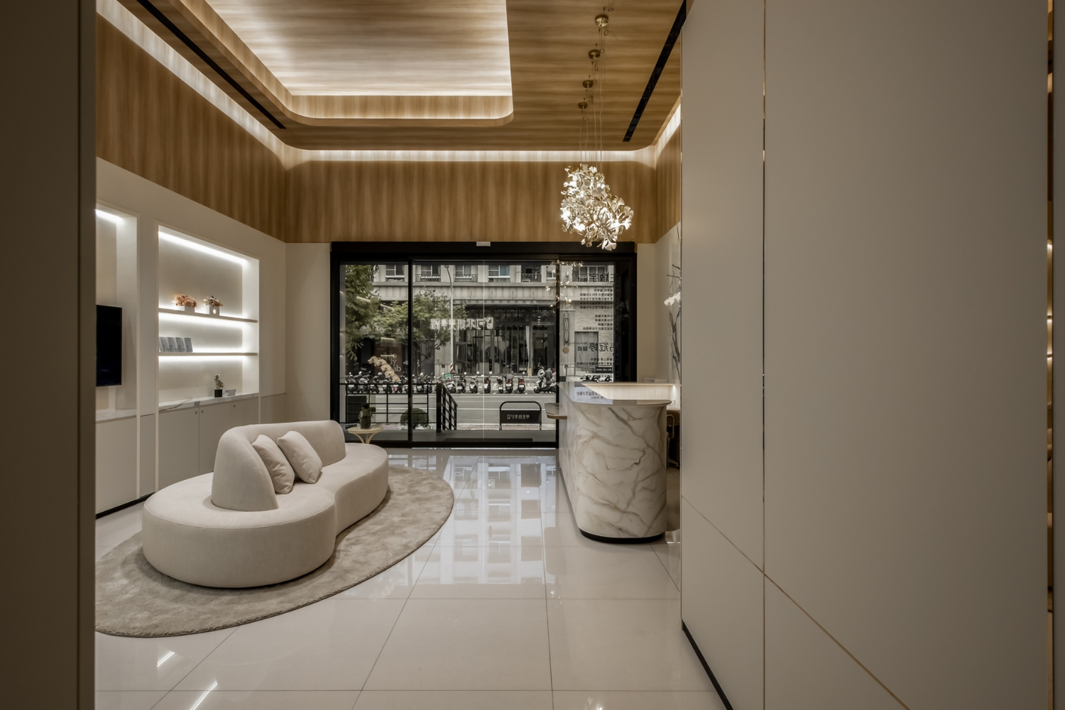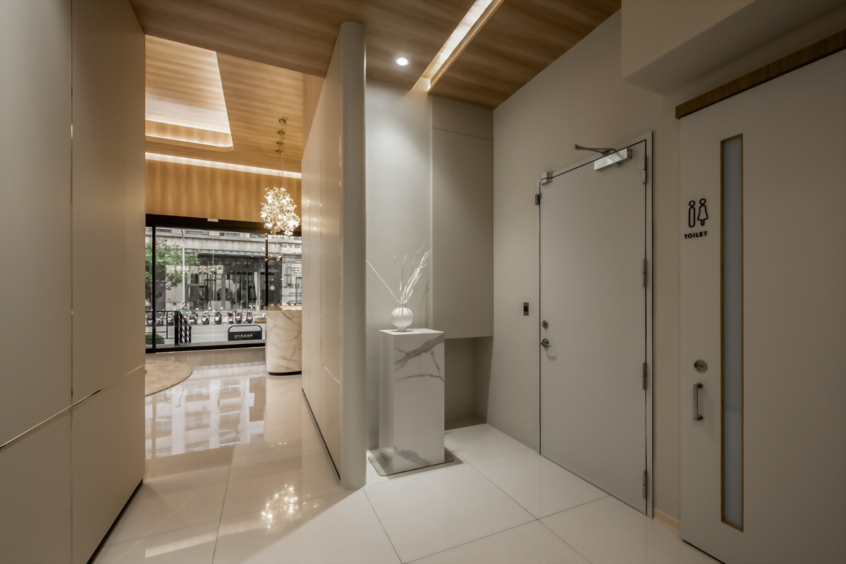 1. 迎賓等候大廳:由門面一路延伸進入到迎賓等候大廳的天花板木壁紙設計,再加上石紋、淺色壁板等歐法式優雅元素合而為一,視覺及身心靈的等待上,輕鬆沒有負擔。